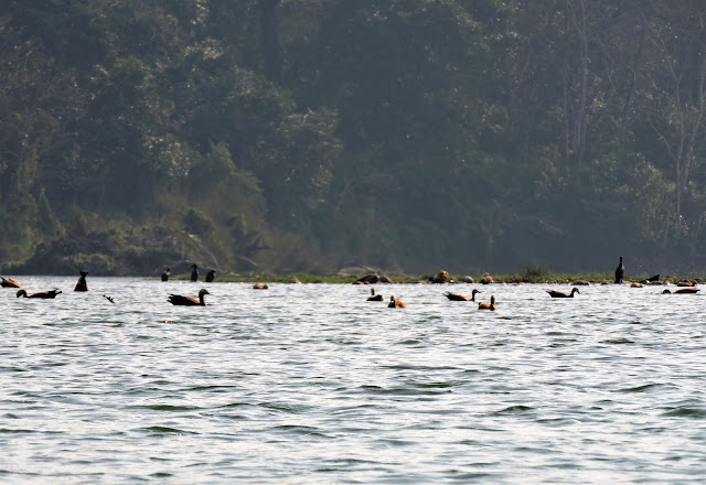 ruddy shelduck (चखेबाचखेबी) on the rapti river in the daytime...